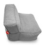 Puff Brisa e revestido com um tecido premium de alta performance que apresenta propriedades pet friendly, sendo mais resistente a arranhões e facilitando a limpeza de pelos.