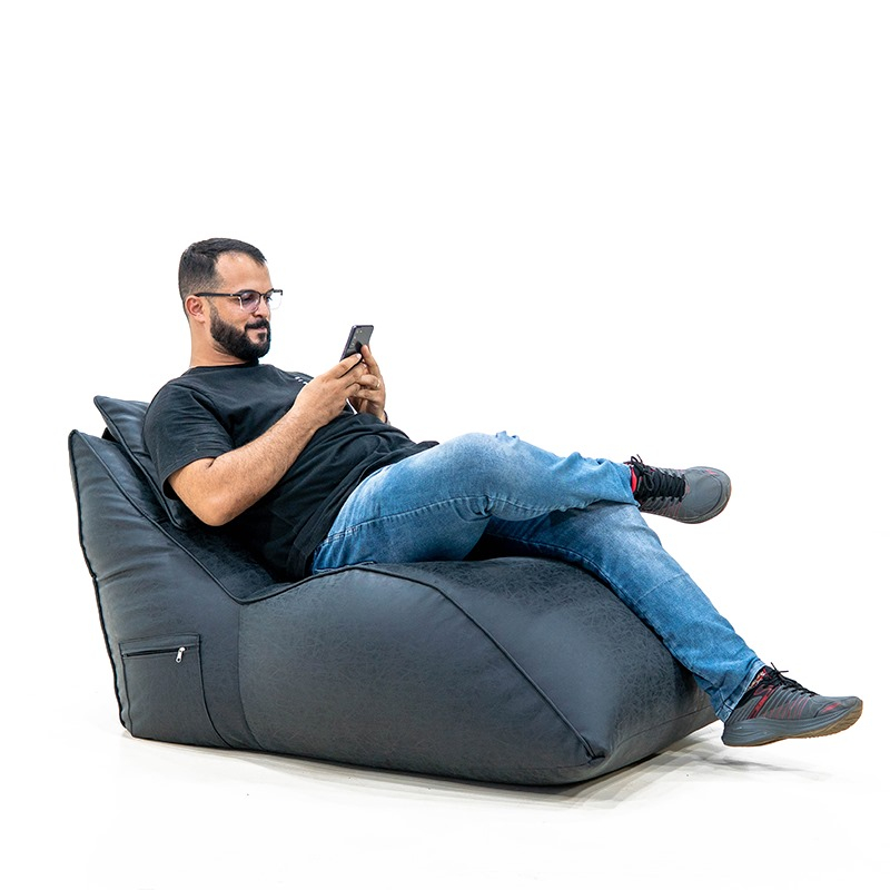 O enchimento de pérolas de EPS 2,5mm garante leveza e um encaixe super aconchegante. Para deixar tudo ainda mais prático, ele vem com uma almofada fixa para apoio de cabeça e um bolso lateral com zíper, ideal para guardar celular, controle remoto ou qualquer outro acessório que você queira manter por perto.