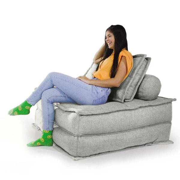 Nossos Estofados mantêm sua forma, e sua bela aparência, mesmo sem a estrutura de madeira, a estrutura interna do sofá de chão, é feita com enchimento de pérolas de EPS 3mm.