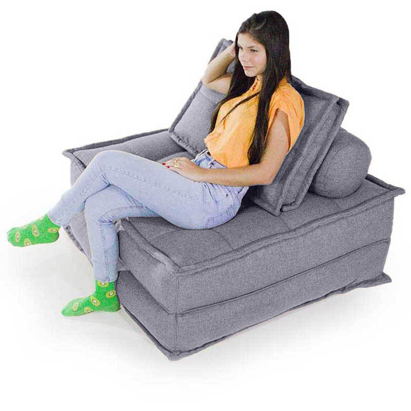 Nossos Estofados mantêm sua forma, e sua bela aparência, mesmo sem a estrutura de madeira, a estrutura interna do sofá de chão, é feita com enchimento de pérolas de EPS 3mm.